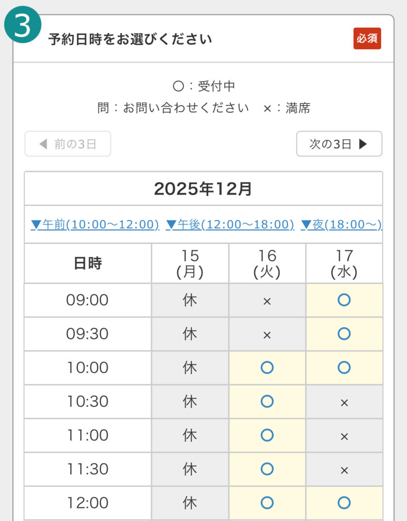 WEB予約の使い方(5ステップ)