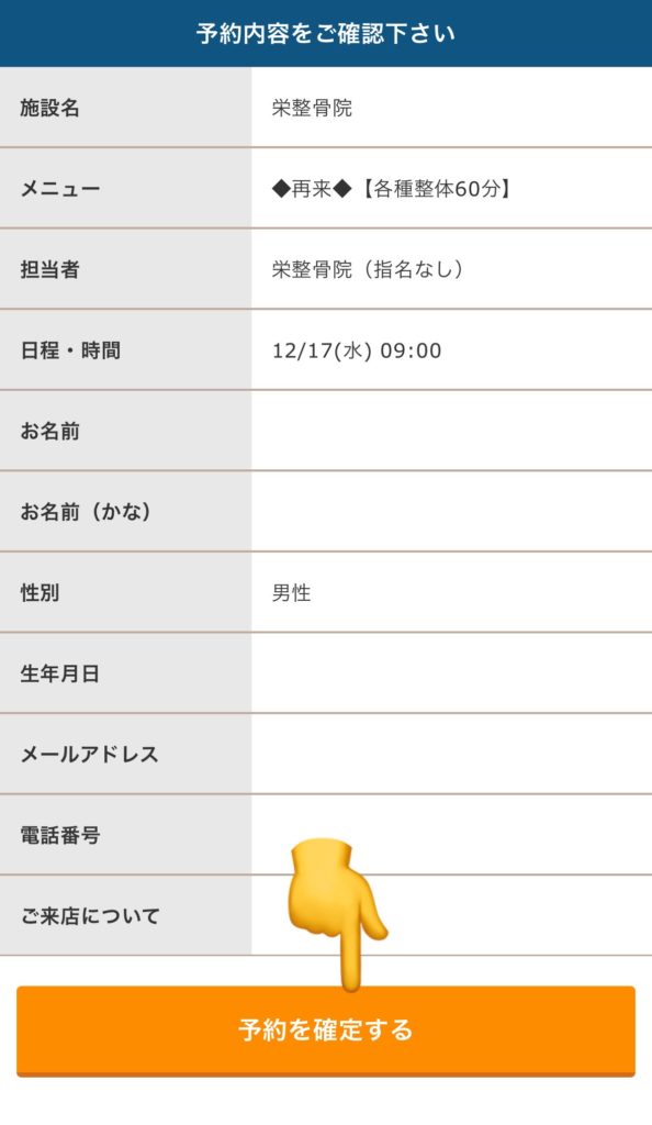 予約内容確認して確定